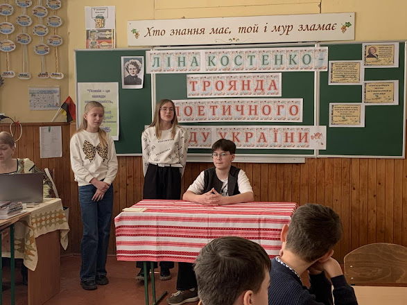 19 березня геніальній українській поетесі та письменниці Ліні Костенко виповнилося 95 років!!! Від щирого серця вітаємо Ліну Василівну з днем народження. У нашій школі з нагоди такого свята відбулася низка заходів. У 7-А класі Я, як класний керівник, і вчитель укр.мови та літератури Оксана Михайлівна В'язівська провели інтерактивні вікторини з читанням поезій Ліни Костенко, інсценізаціями її творів. Також у цей день учителі-філологи із старшокласниками і з моєю участю провели літературно-музичний вечір, присвяений поетесі. Читали вірші, співали пісень, інсценізували твори. Я також заспівала низку улюблених пісень на слова Ліни Костенко і музику Лілії Кобільник (моєї вчительки ще з педуніверситету в Дрогобичі). Було атмосферно, святково, дуже ніжно і лірично. Многая літа Вам, Ліно Василівно!
